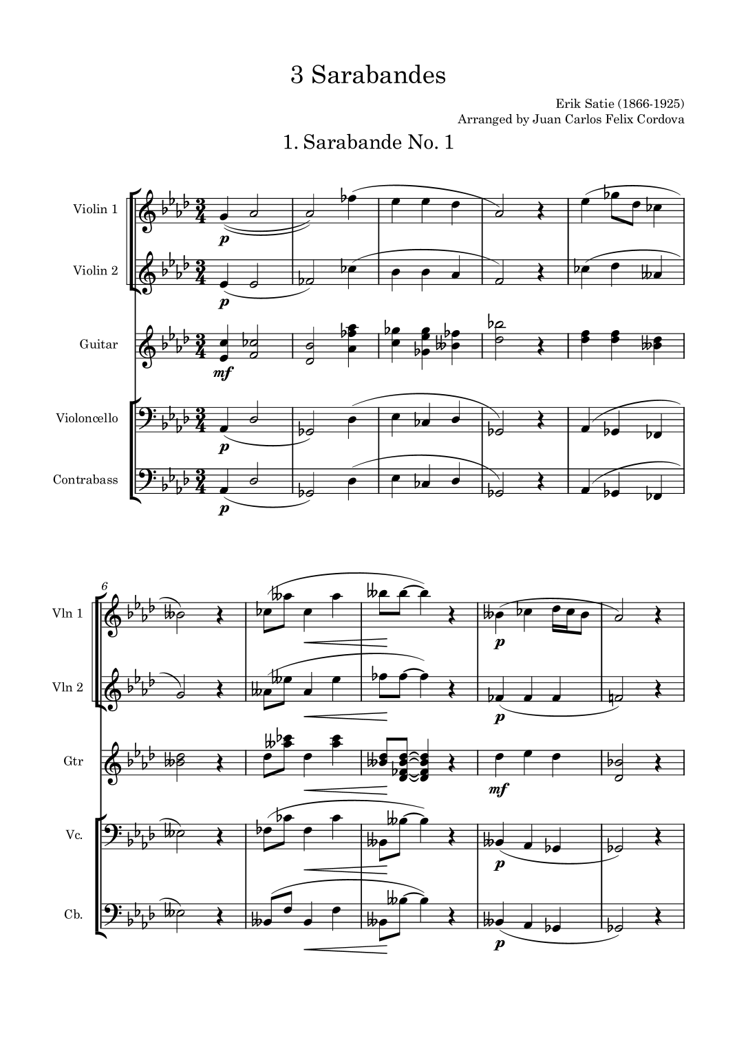 Interaktive Digitale Noten-Vorschau von 'Sarabande No. 1 (arr. Juan Carlos Felix Cordova' von Erik Satie, Performance Ensemble page 1