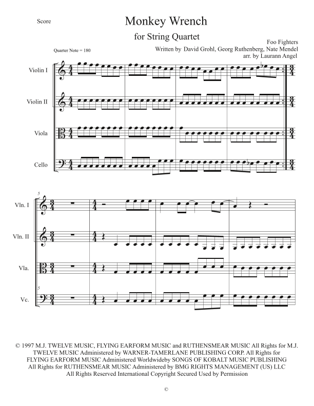 Interaktive Digitale Noten-Vorschau von 'Monkey Wrench (arr. Laurann Angel' von Foo Fighters, Streichquartett page 1