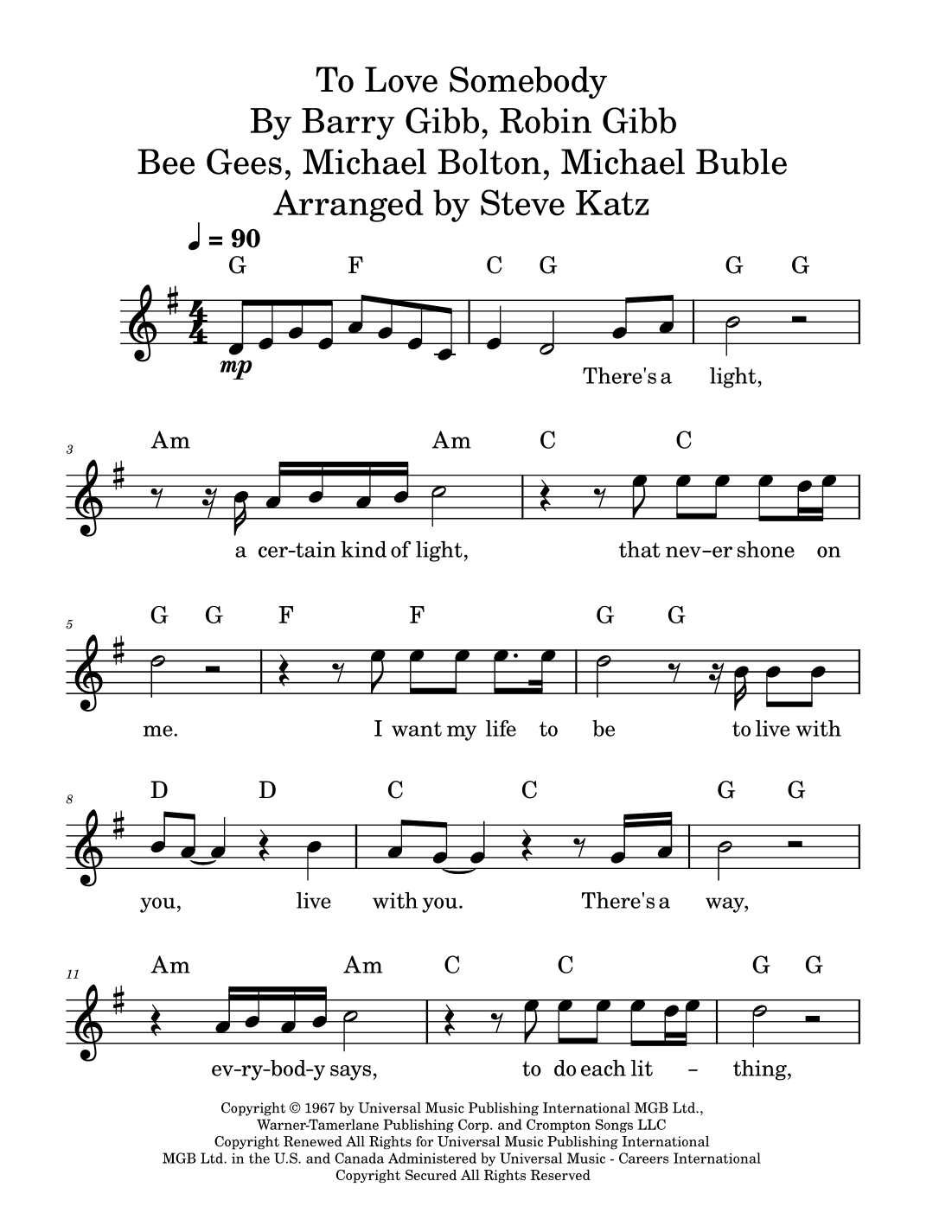 To Love Somebody (arr. Steve Katz) by The Bee Gees Sheet Music for Lead Sheet / Fake Book at Sheet Music Direct