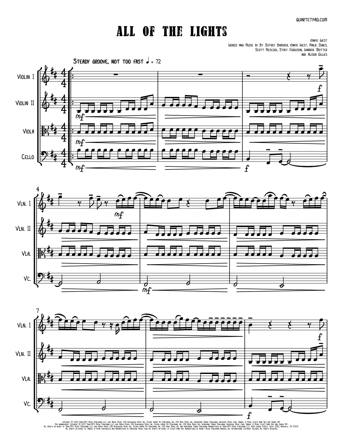 All Of The Lights (arr. Alison Gillies) by Kanye West Sheet Music for String Quartet at Sheet Music Direct