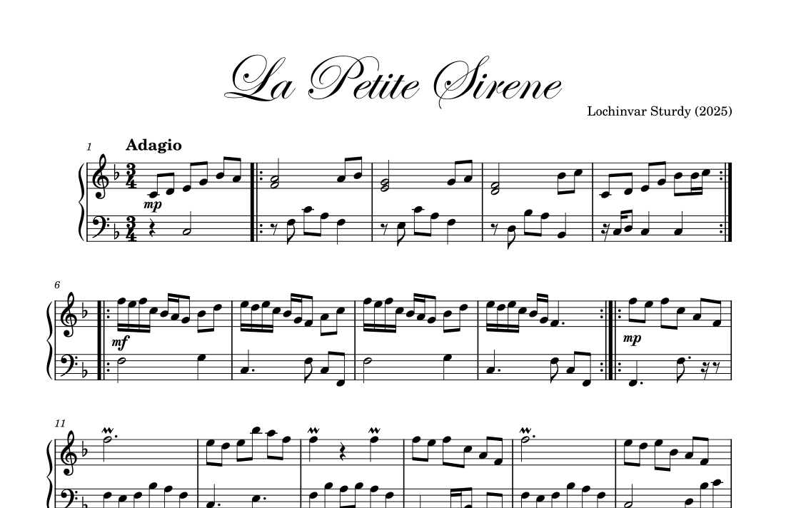 Vista previa interactiva de Partituras Digitales de 'La Petite Sirene' por Lochinvar Sturdy, Piano solo page 1