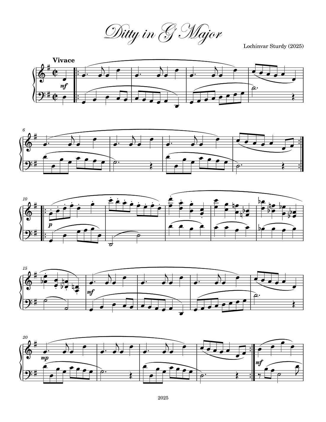 Vista previa interactiva de Partituras Digitales de 'Ditty in G Major' por Lochinvar Sturdy, Piano solo page 1