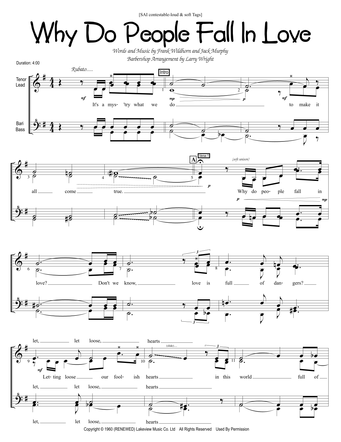Why Do People Fall In Love? (arr. Larry Wright)