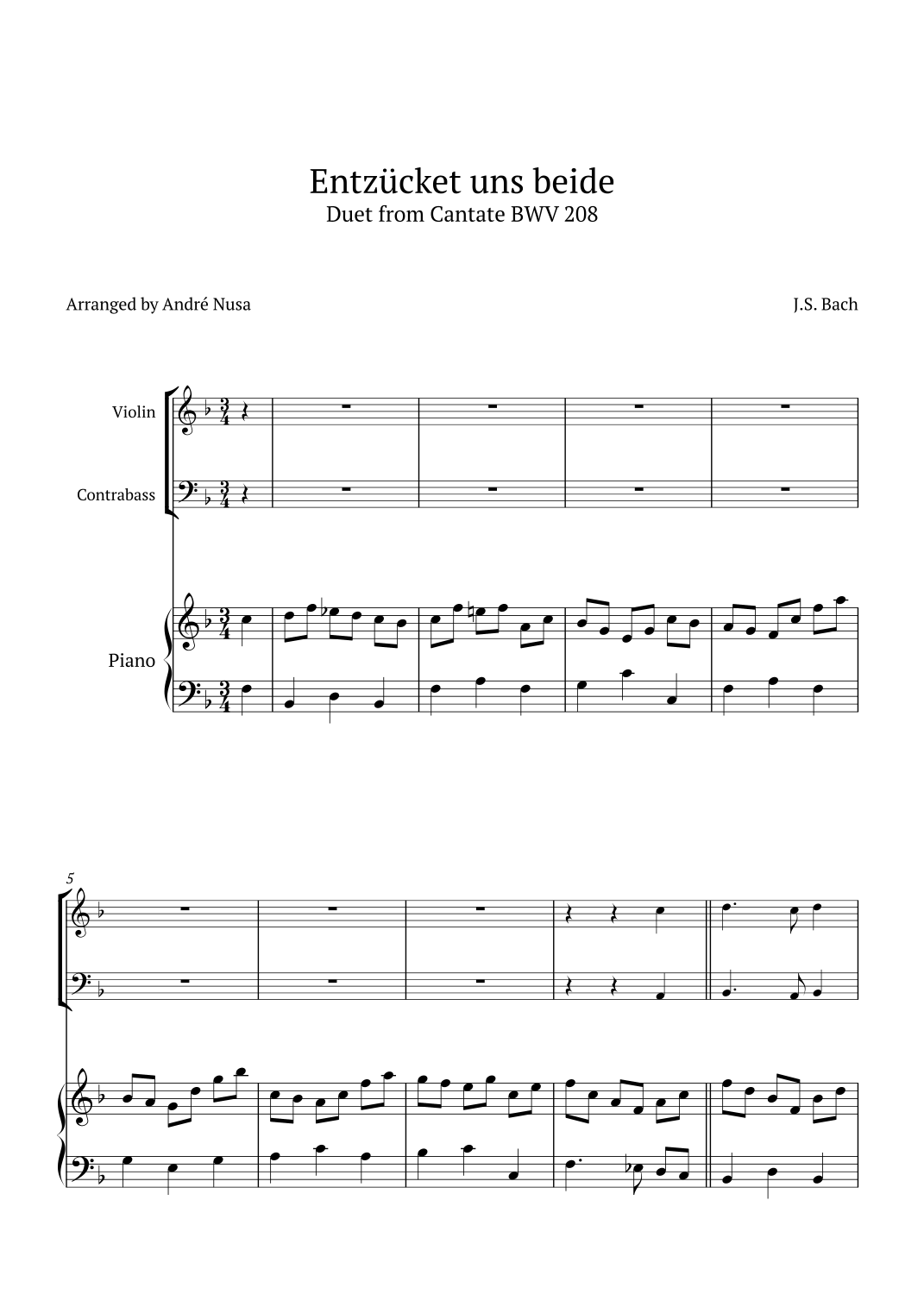 Entzücket uns beide (arr. André Nusa) por J.S. Bach Partituras para Agrupación para Cuerda en Sheet Music Direct