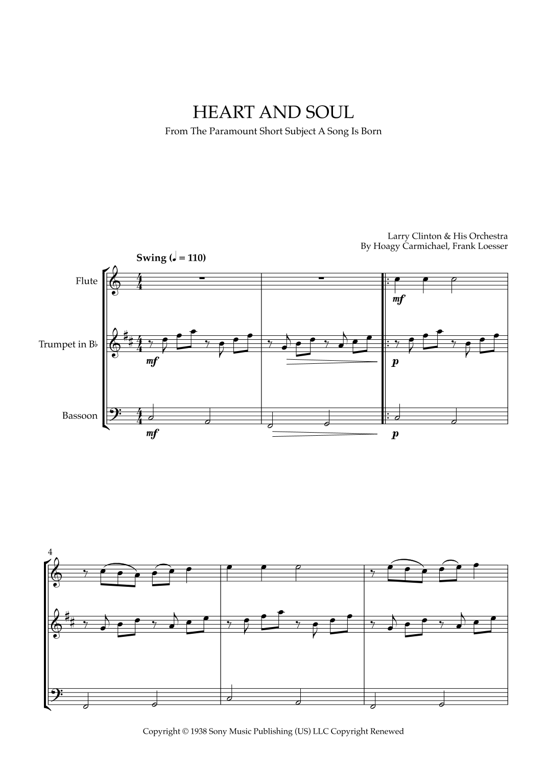 Vista previa interactiva de Partituras Digitales de 'Heart And Soul (arr. Cadenza Editions)' por Larry Clinton & His Orchestra, Conjunto para Actuación page 1