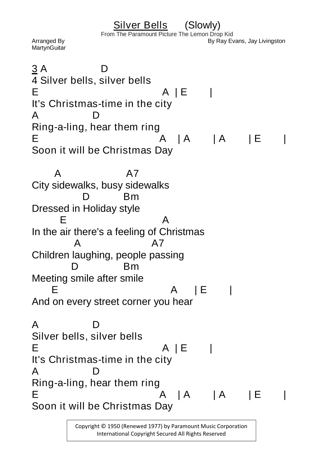 Vista previa interactiva de Partituras Digitales de 'Silver Bells (arr. MartynGuitar)' por Kenny Chesney, Guitarra Acordes / Letras page 1