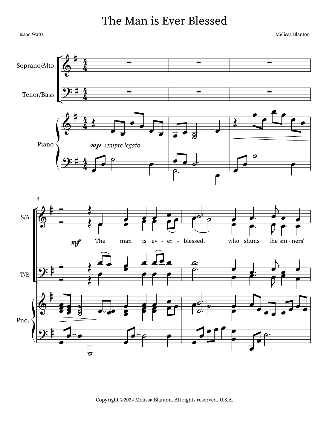 The Man is Ever Blessed - SATB Reduction with Accompaniment por Melissa Blanton Partituras para Piano y Voz en Sheet Music Direct
