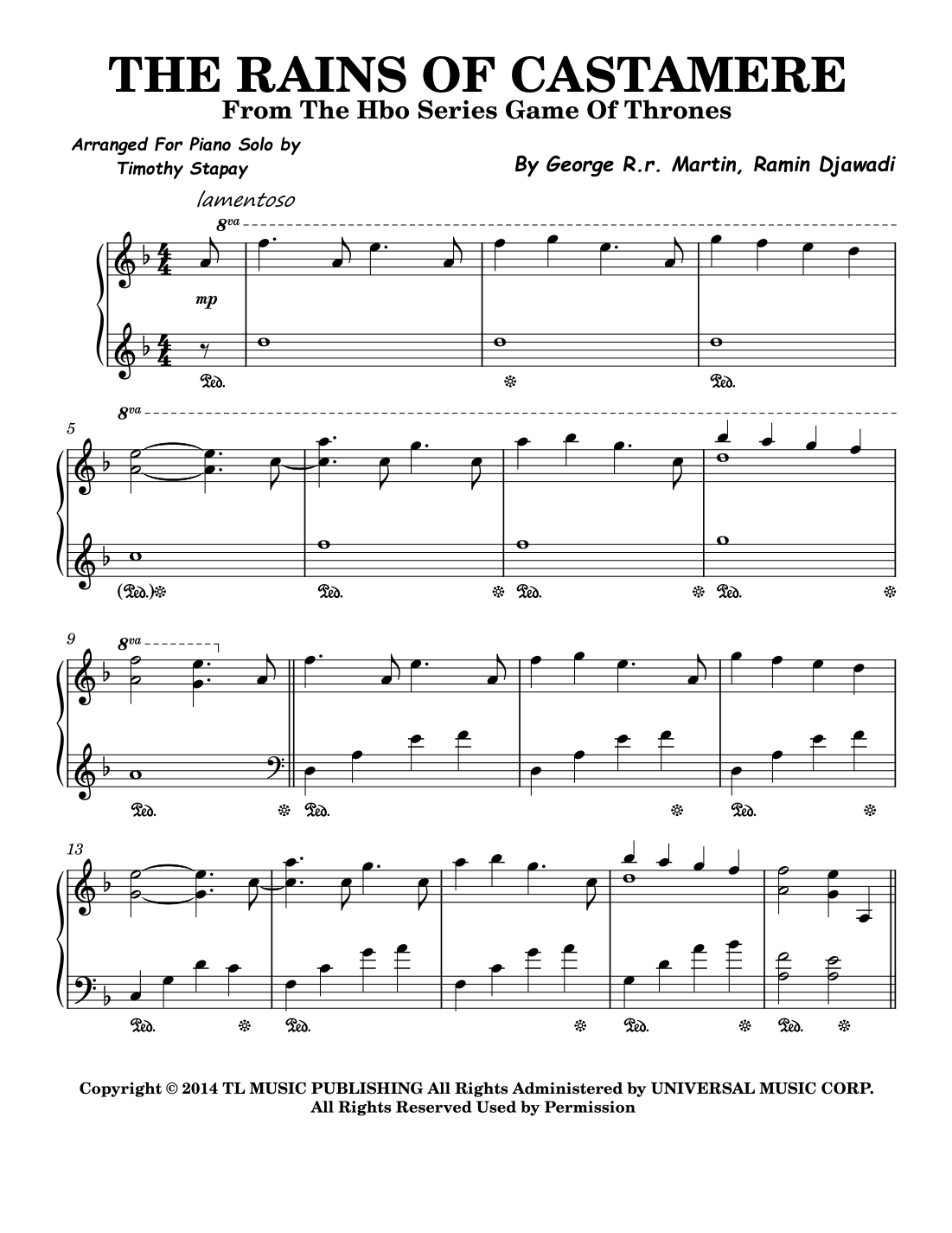 The Rains Of Castamere (arr. Timothy Stapay)