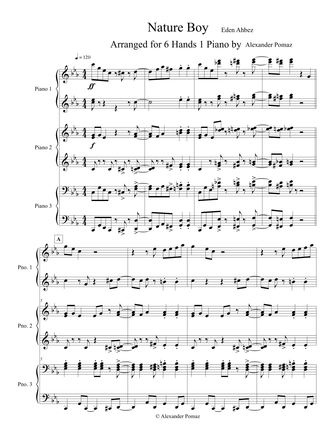 Nature Boy - Eden Ahbez - Alexander Pomaz - 6 Hands Piano (arr. Alexander Pomaz) por Alexander Pomaz Partituras para Piano Dúo en Sheet Music Direct
