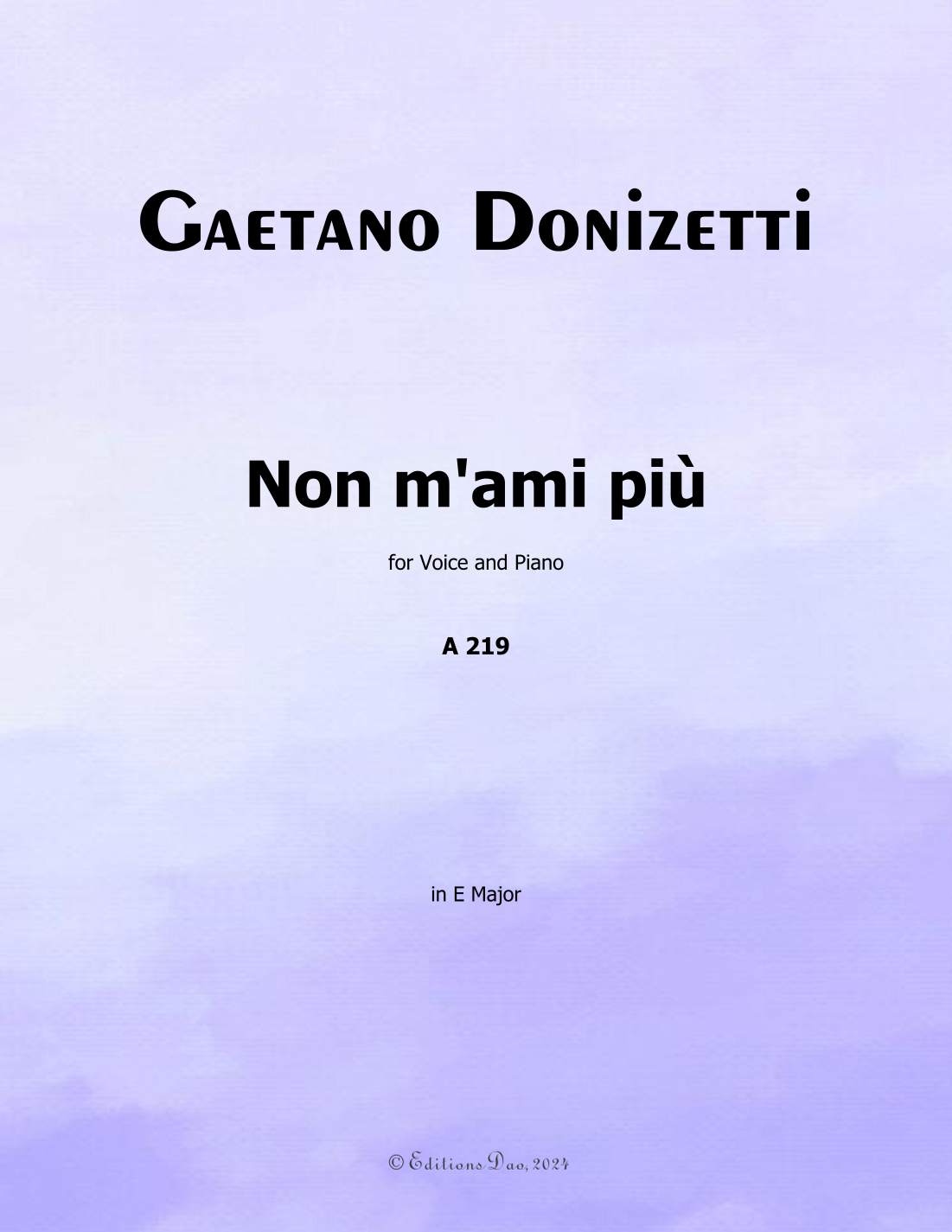 Non m'ami più, by Donizetti, in E Major (arr. Editions Dao) por DONIZETTI Partituras para Piano y Voz en Sheet Music Direct