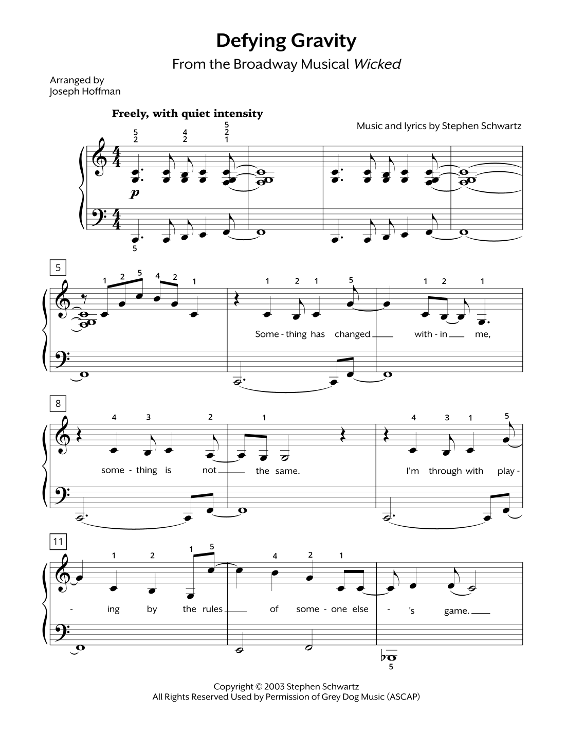 Defying Gravity (arr. Joseph Hoffman, Hoffman Academy - Early Intermediate) por Stephen Schwartz Partituras para Piano solo en Sheet Music Direct