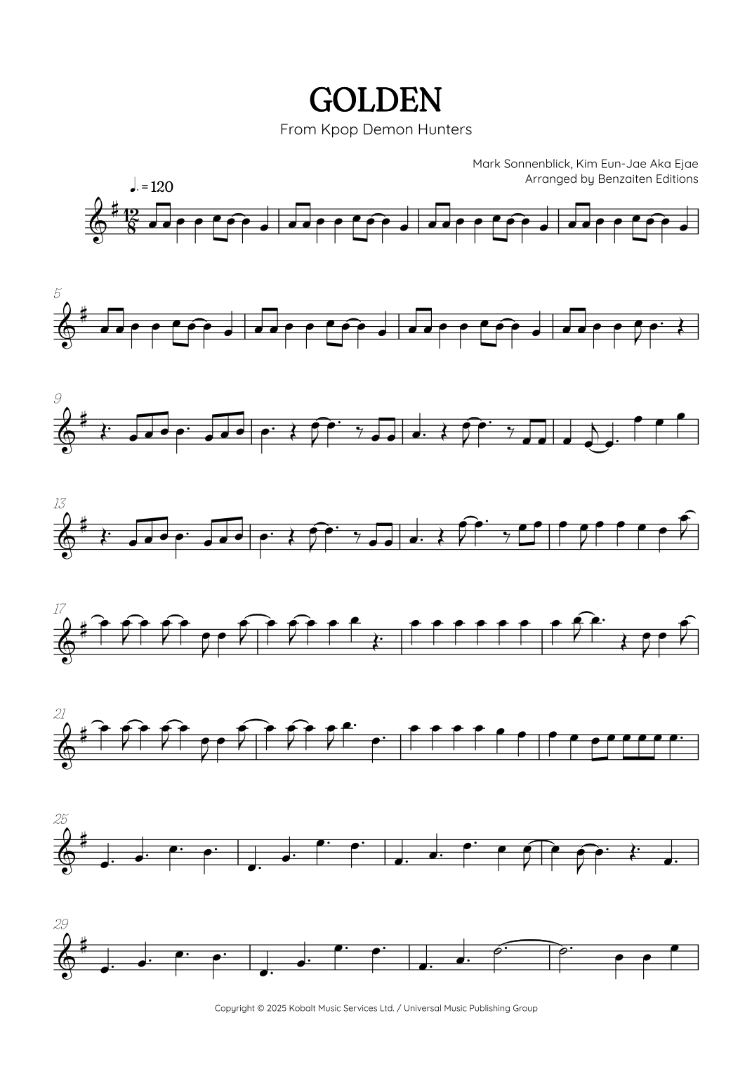La compra de Golden (arr. Benzaiten Editions) incluye: