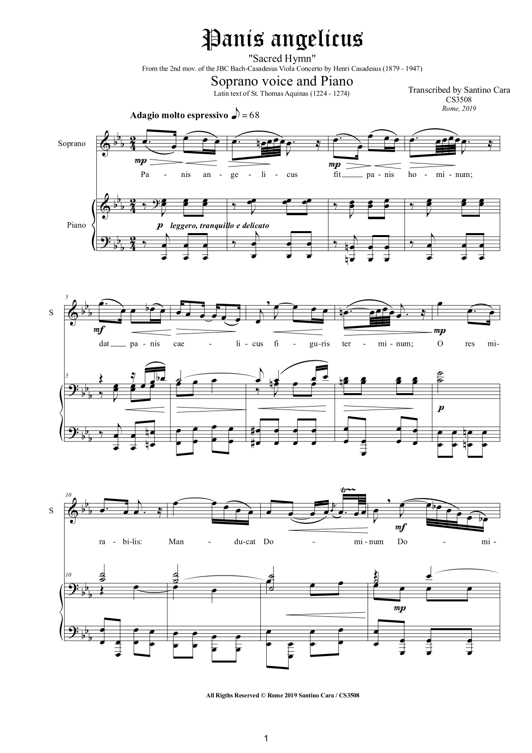 Panis angelicus - Sacred Hymn in C minor for Soprano voice and Piano (arr. Santino Cara)