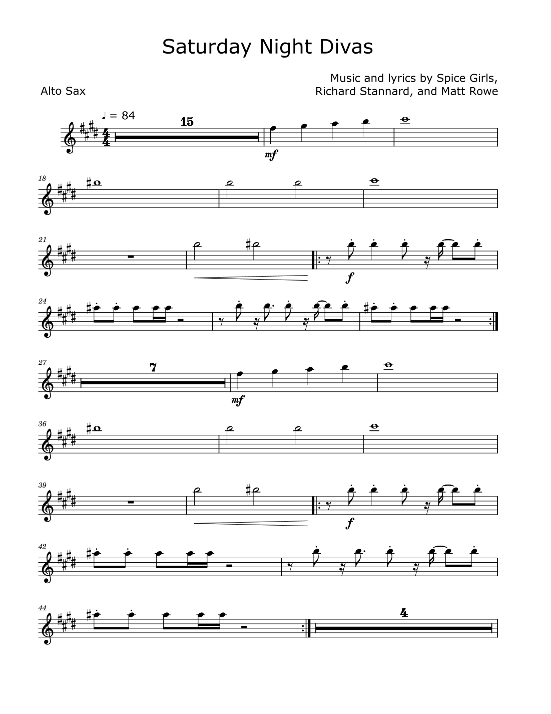 Saturday Night Divas (arr. David Lartey) por Spice Girls Partituras para Saxofón Alto solo en Sheet Music Direct