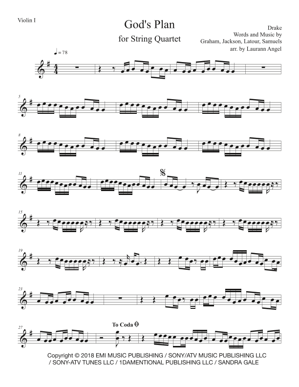God's Plan (arr. Laurann Angel) por Drake Partituras para Cuarteto de cuerda en Sheet Music Direct