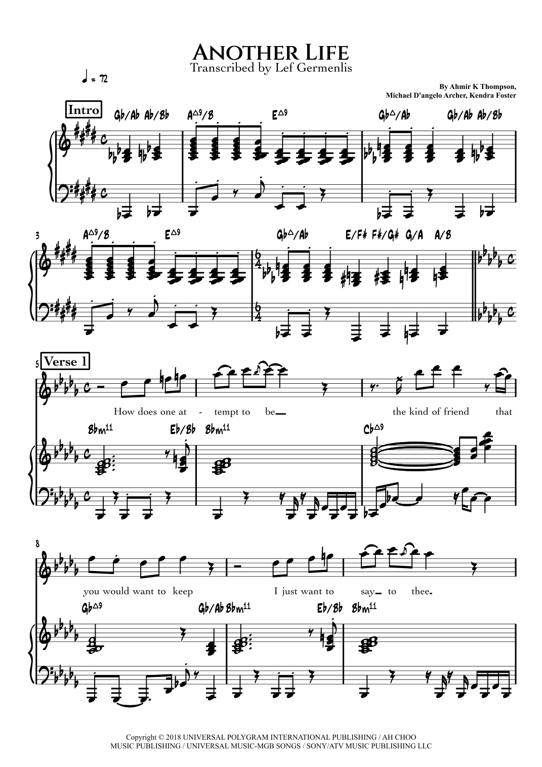 Another Life (arr. Lef Germenlis) par D'Angelo Partitions pour Piano Accords/Lyrics sur Sheet Music Direct