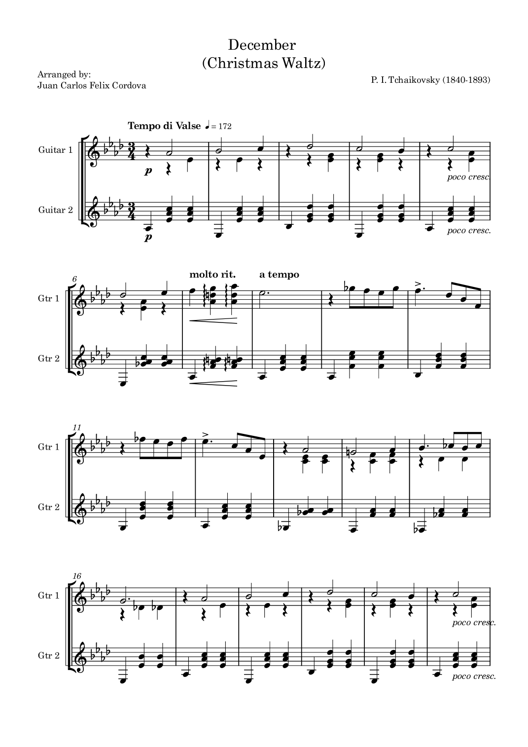 Couverture pour "December Op. 37a No. 12 (Christmas Waltz) (arr. Juan Carlos Felix Cordova" par Pyotr Ilyich Tchaikovsky PASS