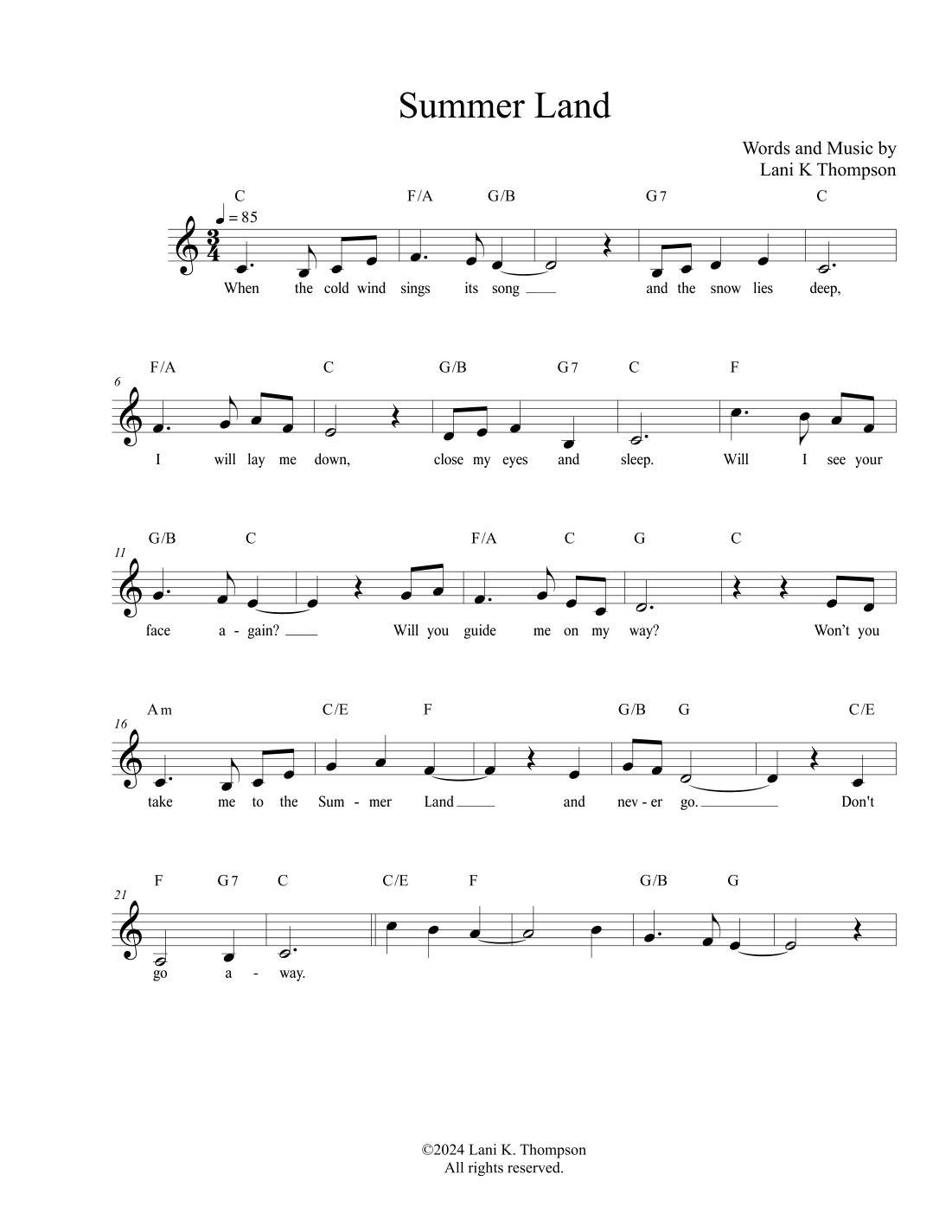 Aperçu interactif Partitions numériques> de 'Summer Land' par Lani K Thompson, Lead Sheet / Fake Book page 1