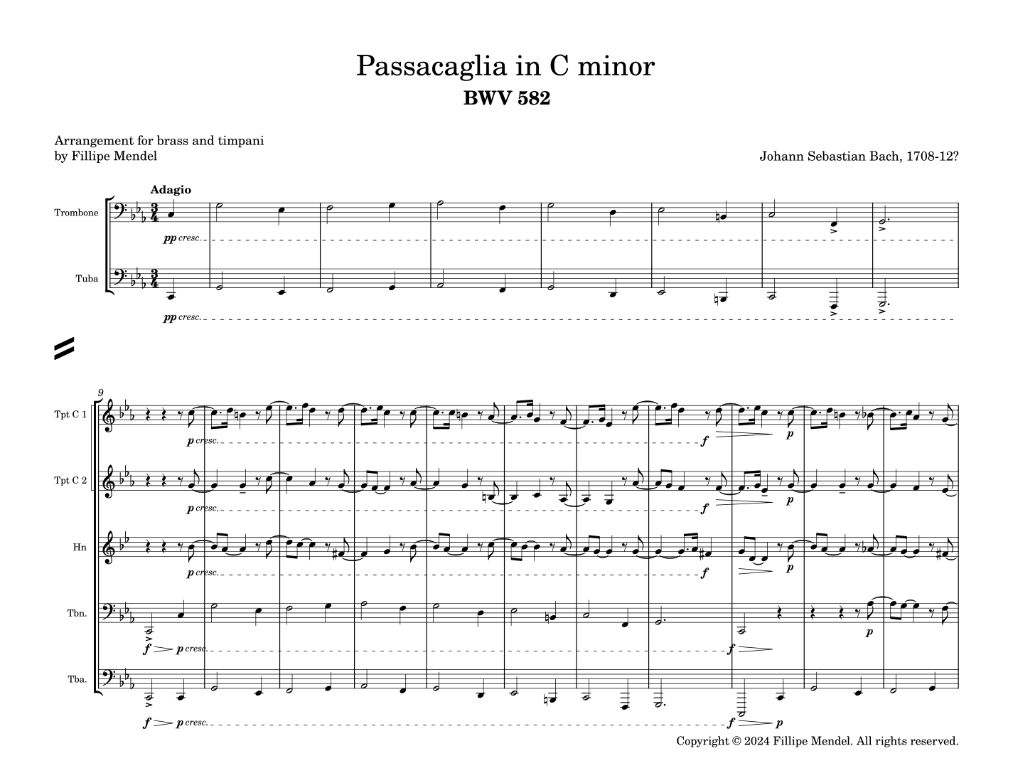 Bach - Passacaglia in C minor BWV 582 for brass and timpani (arr. Fillipe Mendel)