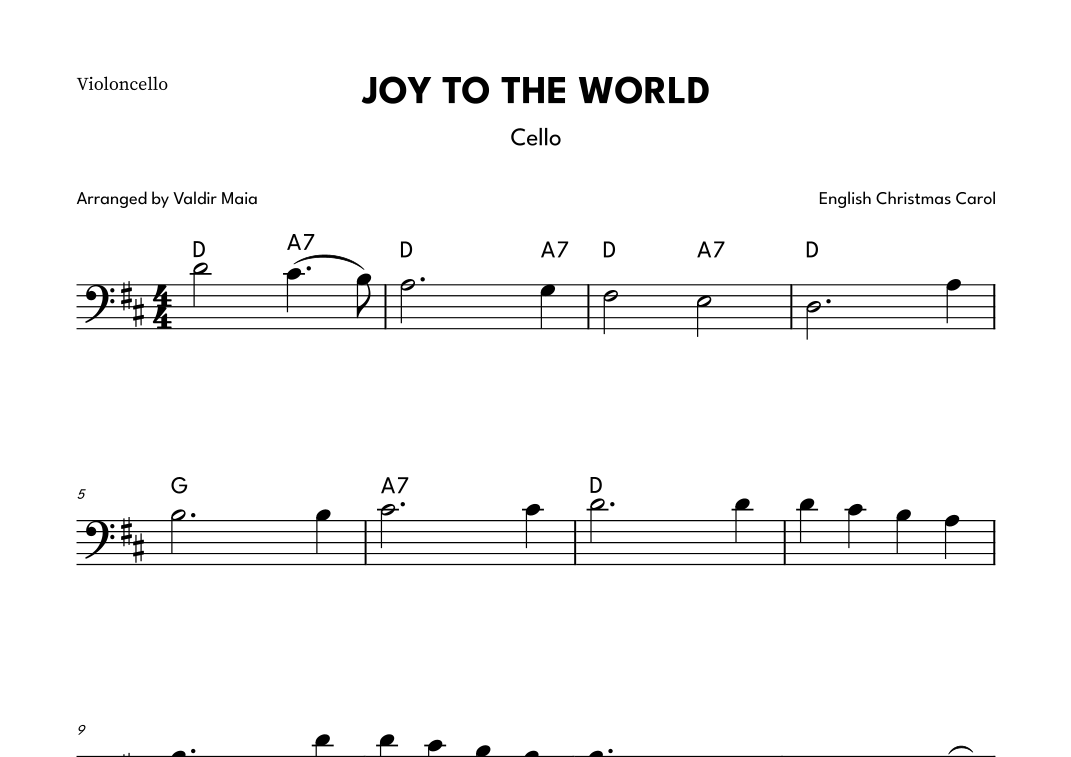 Joy to the World for Cello Solo with Chord Symbols (arr. Valdir Maia)