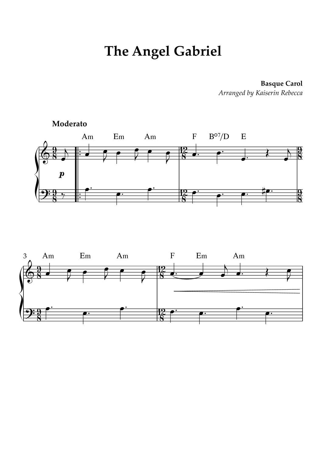 The Angel Gabriel (Gabriel's Message) (arr. Kaiserin Rebecca) par Basque Carol Partitions pour Piano Facile sur Sheet Music Direct