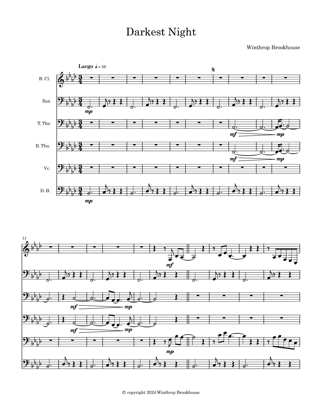 Aperçu interactif Partitions numériques> de 'Darkest Night' par Winthrop Brookhouse, Performance Ensemble page 1