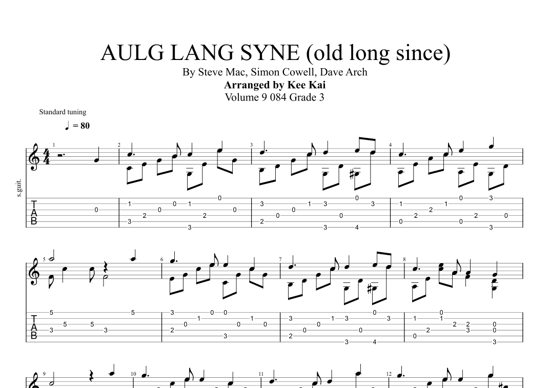 AULD LANG SYNE (arr. Kee Kai) par Mike Shapiro Partitions pour Guitare solo sur Sheet Music Direct