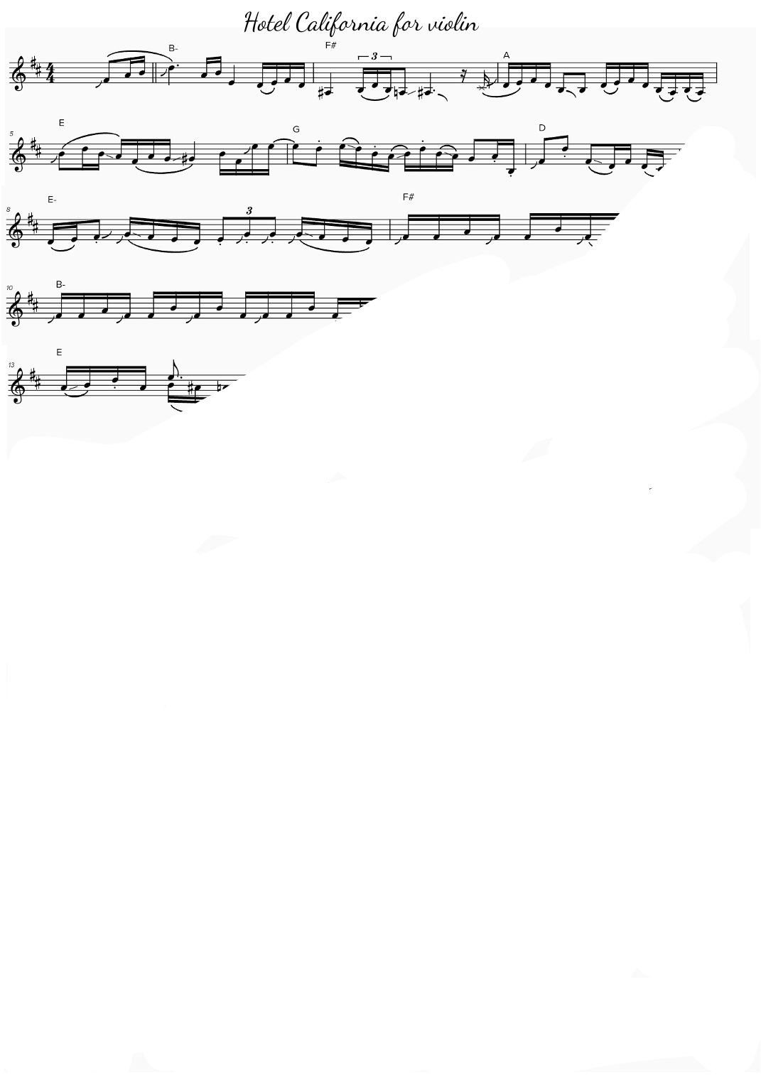 Aperçu interactif Partitions numériques> de 'Hotel California (arr. Gabriele Guercio)' par Eagles, Violon solo page 1