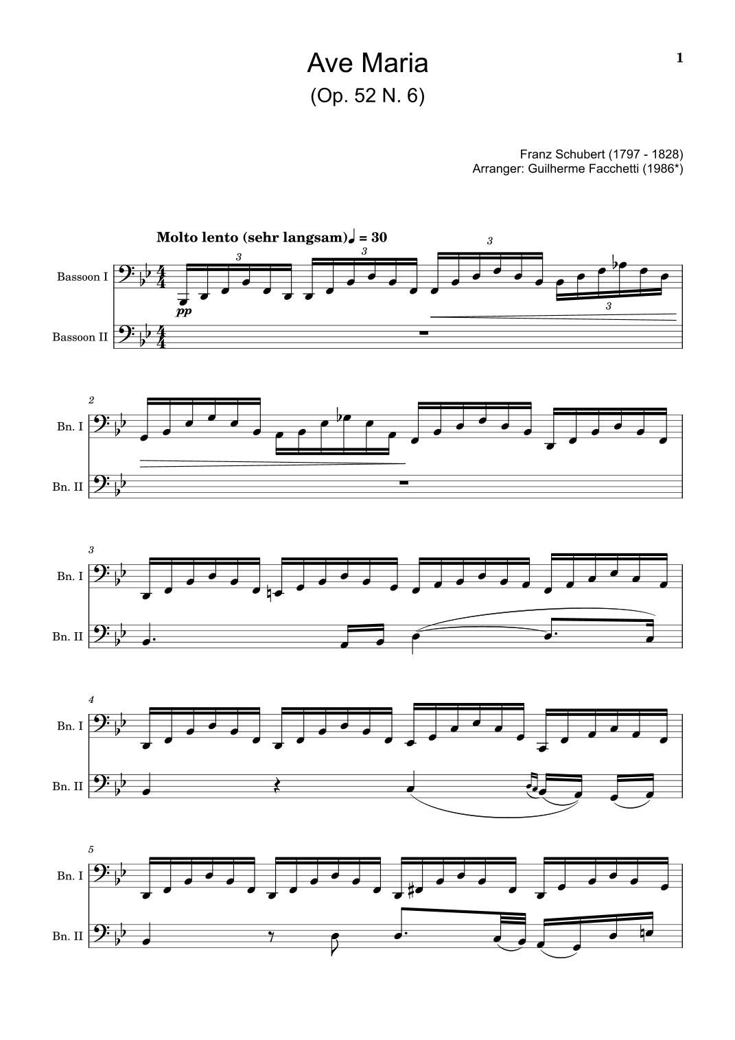 Ave Maria by F. Schubert – Arranged for Bassoon Duet. (arr. Guilherme Facchetti)