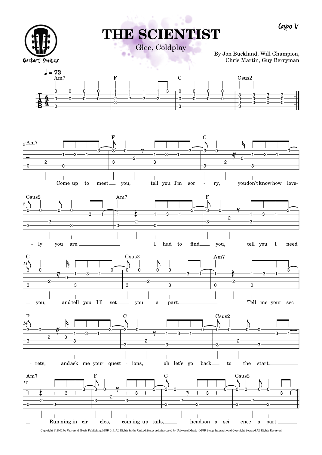 The Scientist (arr. Beckert Guitar) par Coldplay Partitions pour Guitare solo sur Sheet Music Direct
