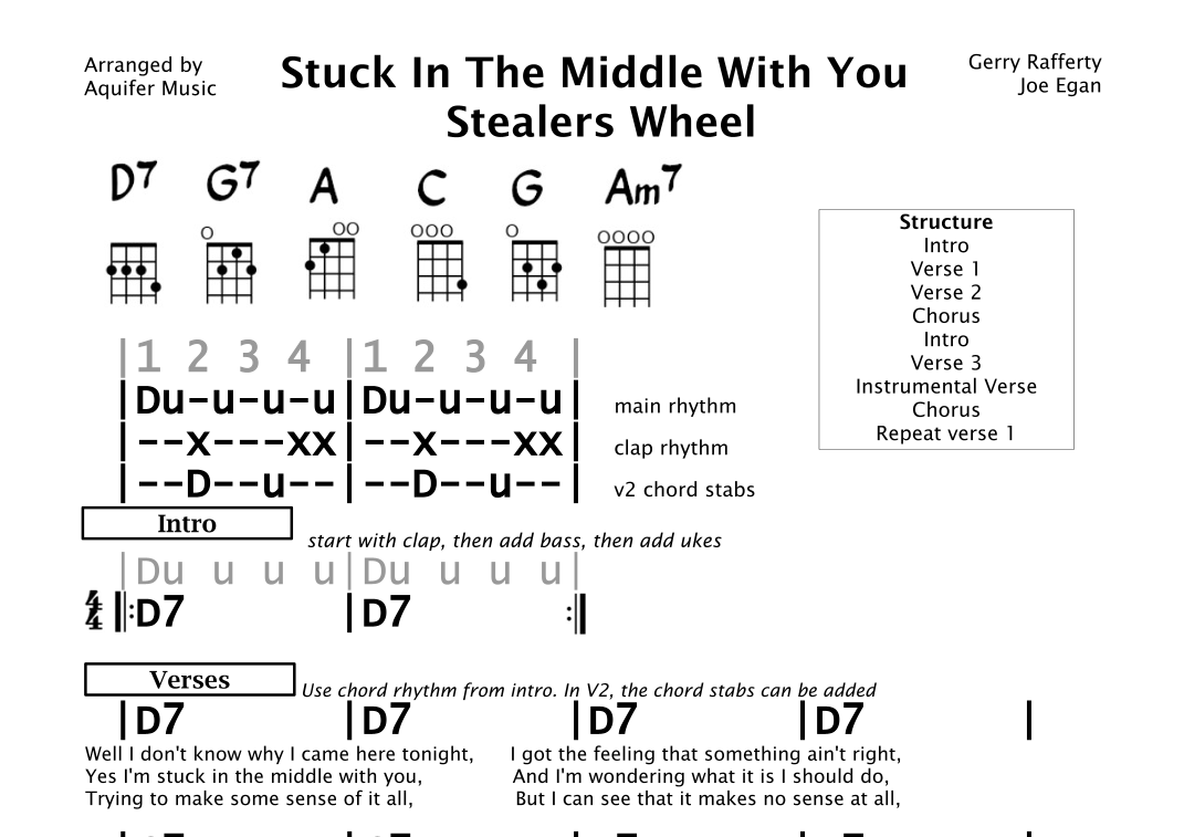 Stuck In The Middle With You (arr. Aquifer Music) par Stealers Wheel Partitions pour Ukulélé Accords/Lyrics sur Sheet Music Direct