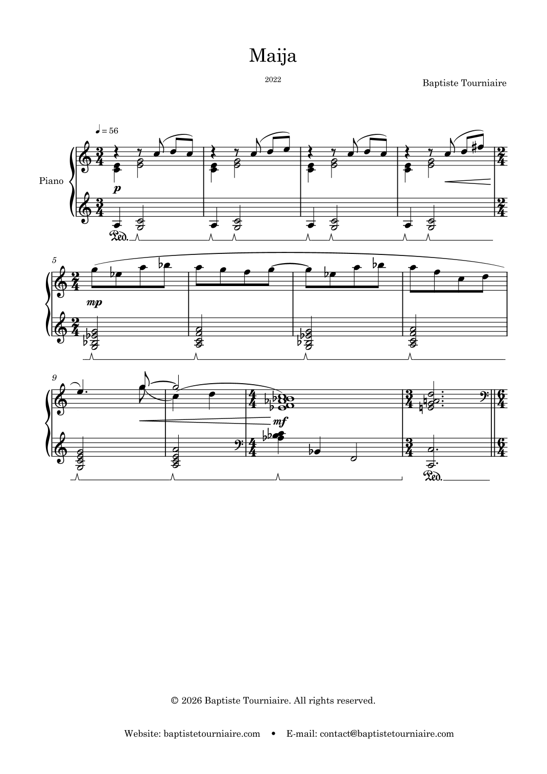 Maija par Baptiste Tourniaire Partitions pour Piano solo sur Sheet Music Direct