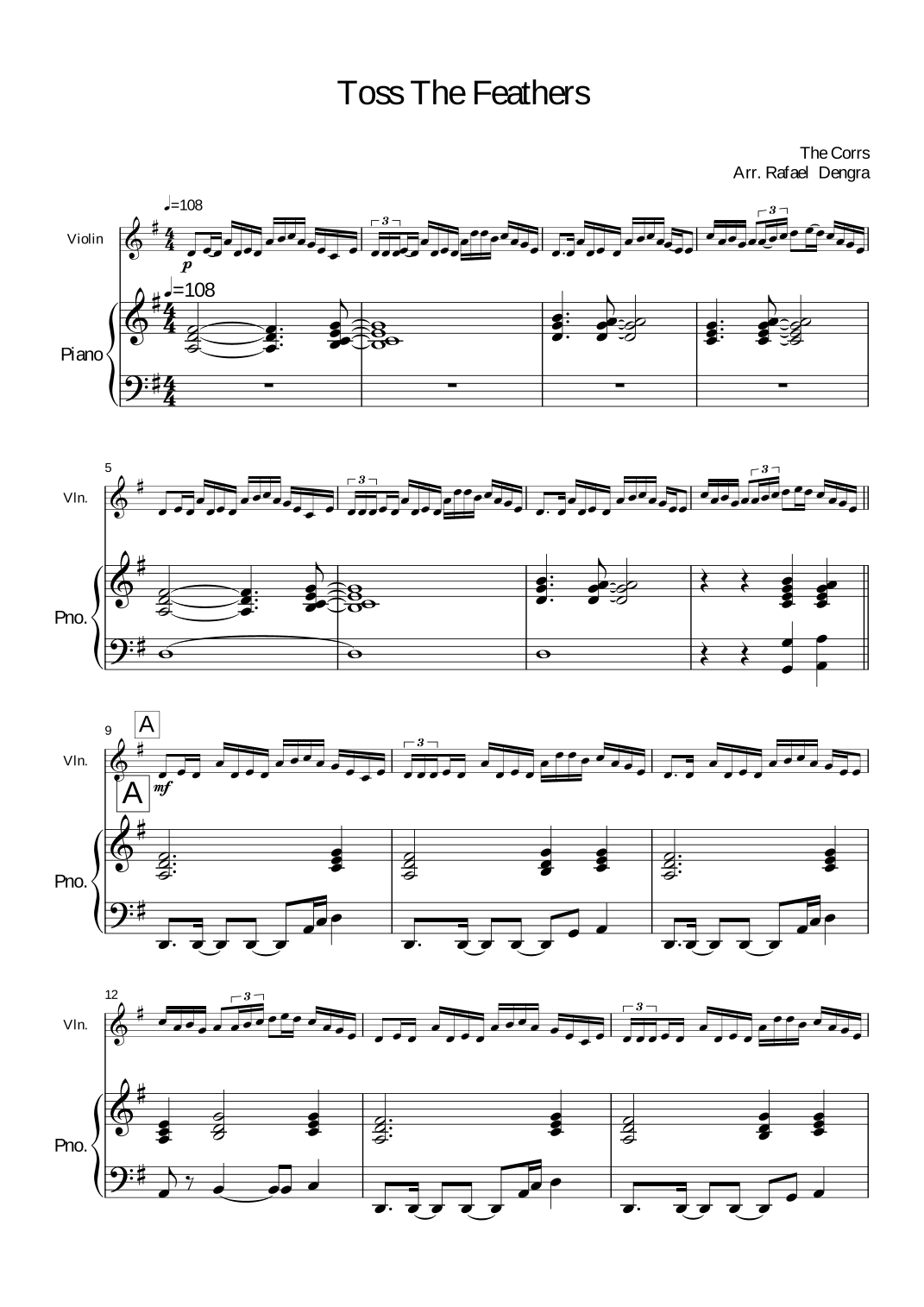 Aperçu interactif Partitions numériques> de 'Toss The Feathers (arr. Rafael Dengra)' par The Corrs, Violon et Piano page 1
