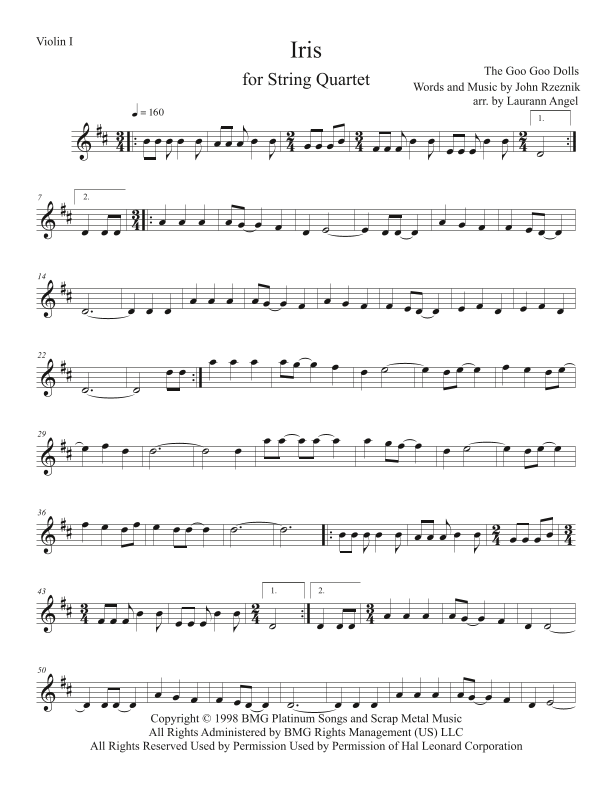 Iris (arr. Laurann Angel) par Goo Goo Dolls Partitions pour Quatuor à cordes sur Sheet Music Direct
