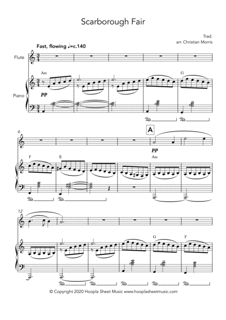 Interactive Digital Sheet Music preview of 'Scarborough Fair (arr. Hoopla Sheet Music' by Christian Morris, Flute Solo page 1