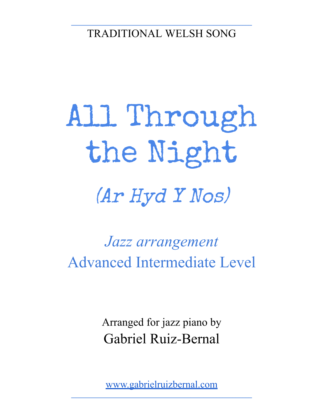 Cover Art for "ALL THROUGH THE NIGHT (Ar Hyd Y Nos) Jazz Piano arrangement. Advanced Intermediate Level (arr. Gabriel Ruiz-Bernal)" by Traditional Welsh Song PASS