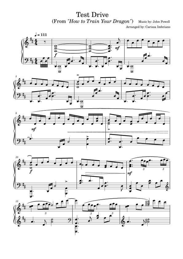 Test Drive (arr. Carissa Imbriano) by John Powell Sheet Music for Piano Solo at Sheet Music Direct