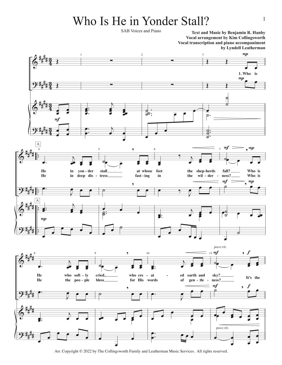 Who Is He in Yonder Stall? (arr. Kim Collingsworth, Lyndell Leatherman) by Collingsworth Family Sheet Music for SAB Choir at Sheet Music Direct