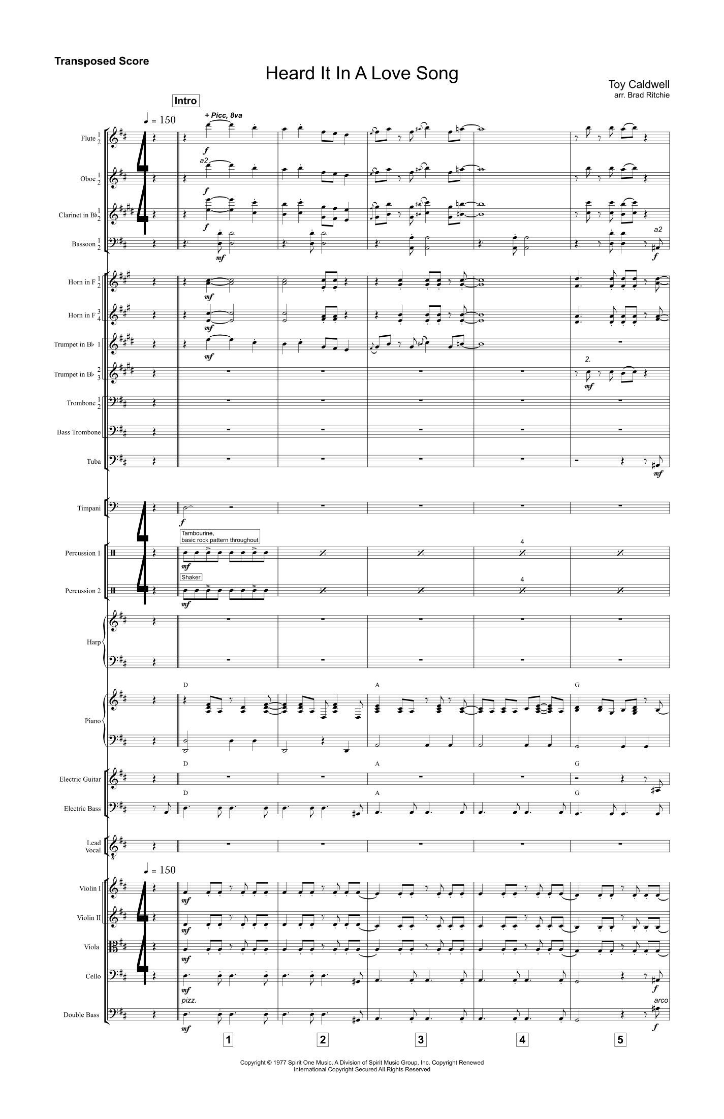 Vista previa interactiva de Partituras Digitales de 'Heard It In A Love Song (arr. Brad Ritchie)' por Marshall Tucker Band, Orquesta completa page 1