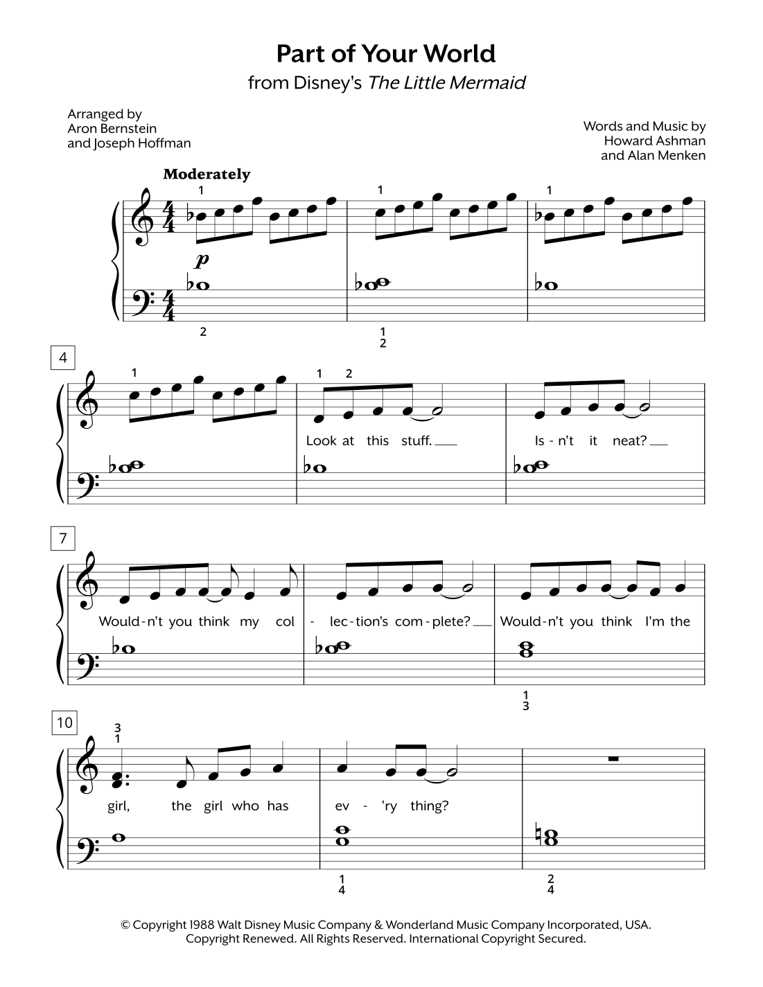Part Of Your World (arr. Aron Bernstein, Joseph Hoffman, Hoffman Academy - Easy Piano) by Howard Ashman Sheet Music for Easy Piano at Sheet Music Direct
