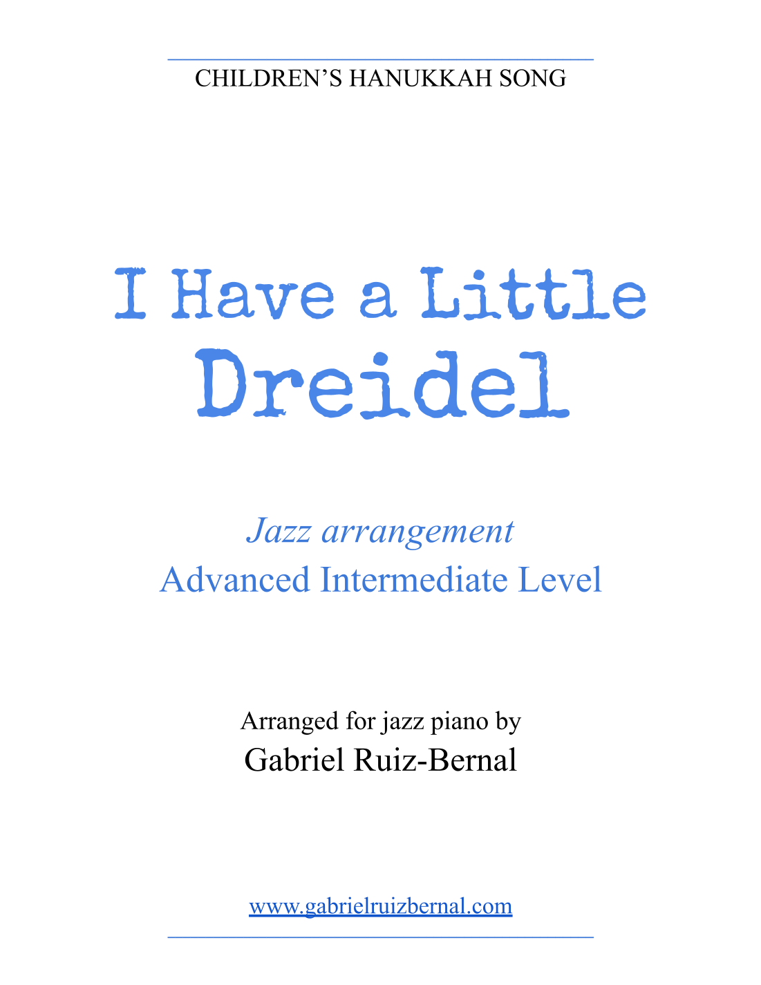 Purchase of I HAVE A LITTLE DREIDEL Jazz piano arrangement. Advanced Intermediate level (arr. Gabriel Ruiz-Bernal (ASCAP)) includes: