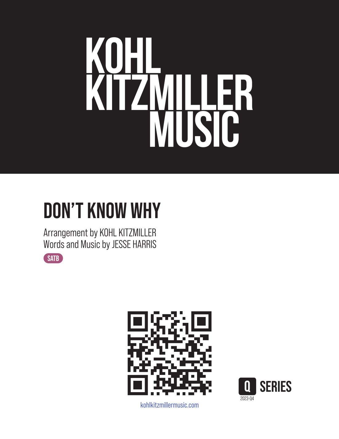 Learning media for this arrangement is available here: https://kohlkitzmillermusic.com/song/dont-know-why-kohl-kitzmiller