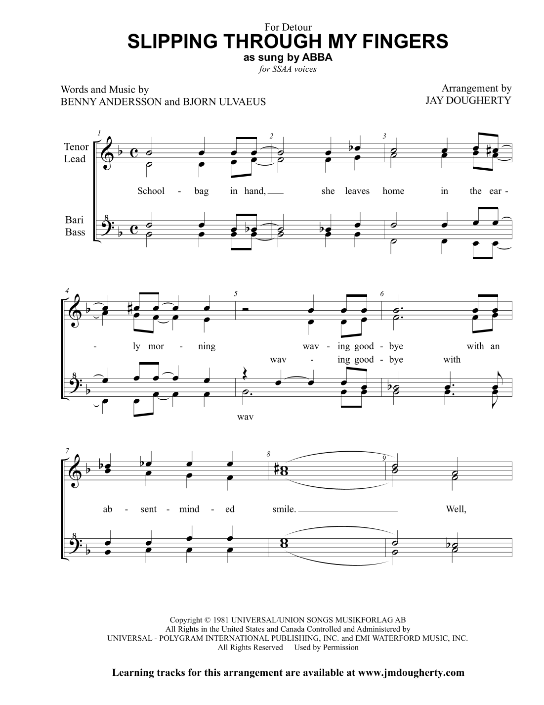 Interactive Digital Sheet Music preview of 'Slipping Through My Fingers (arr. Jay Dougherty' by ABBA, SSAA Choir page 1