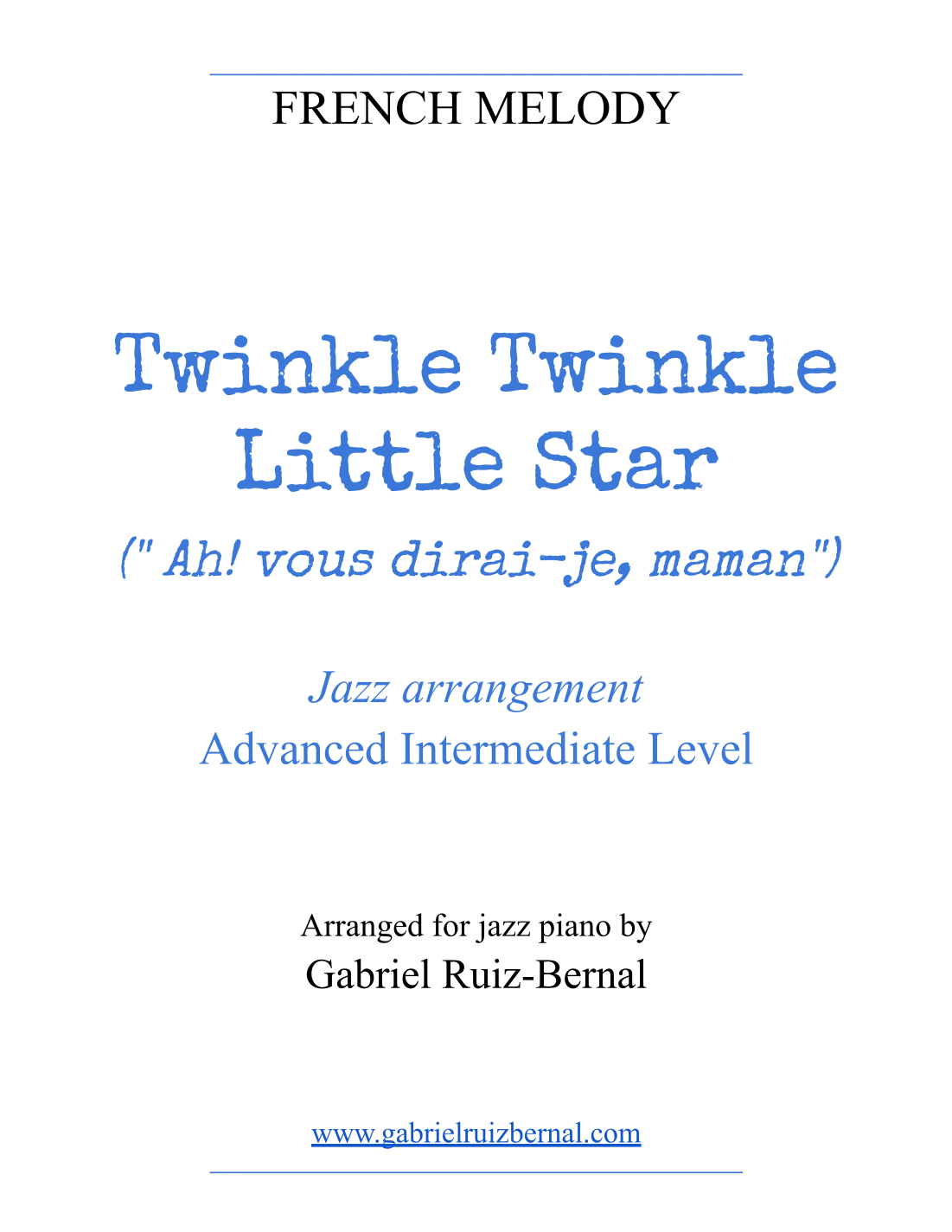 Purchase of TWINKLE TWINKLE LITTLE STAR Jazz Piano arrangement. Advanced Intermediate Level (arr. Gabriel Ruiz-Bernal) includes: