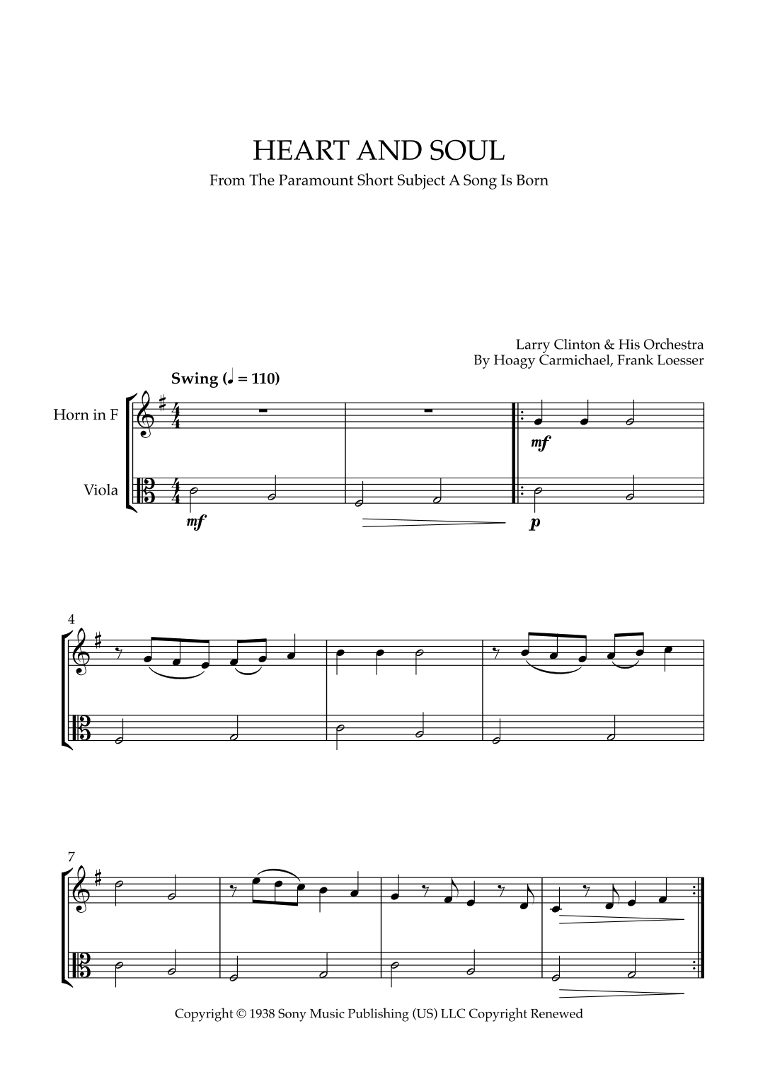 Heart And Soul (arr. Cadenza Editions) by Larry Clinton & His Orchestra Sheet Music for Instrumental Duet at Sheet Music Direct