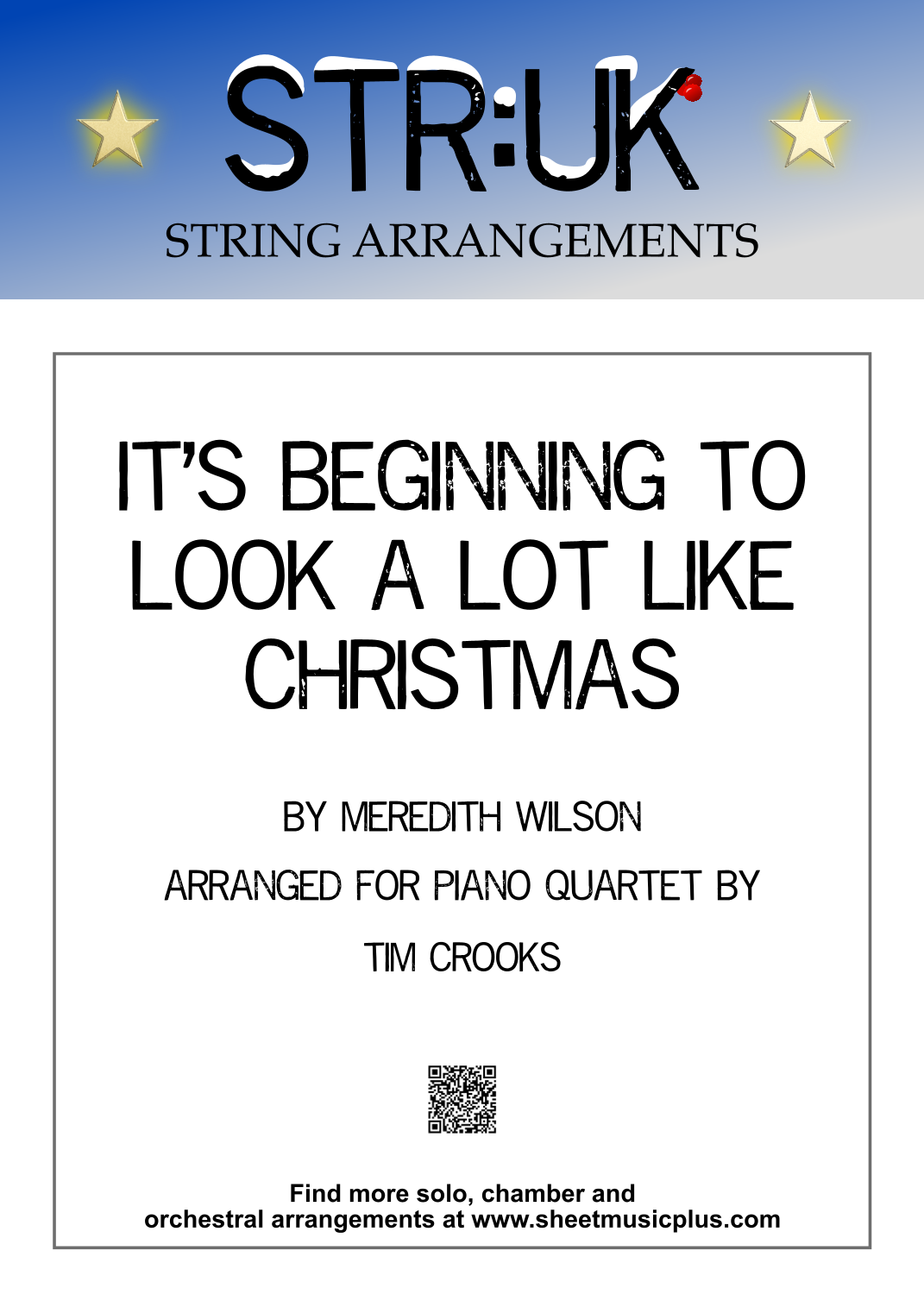 A sheet music download of 'It's Beginning to look a Lot Like Christmas' by Meredith Wilson arranged for Piano Quartet by Tim Crooks, published by STR:UK String Music. This arrangement of 'It's Beginning to Look a Lot Like Christmas' is suitable for more Advanced Intermediate level players (ABRSM Grade 6+)