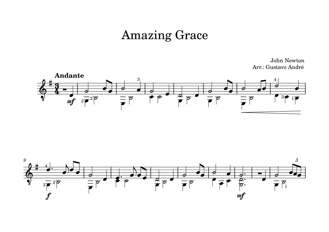 Amazing Grace (arr. Gustavo André) by Gustavo André Sheet Music for Solo Guitar at Sheet Music Direct