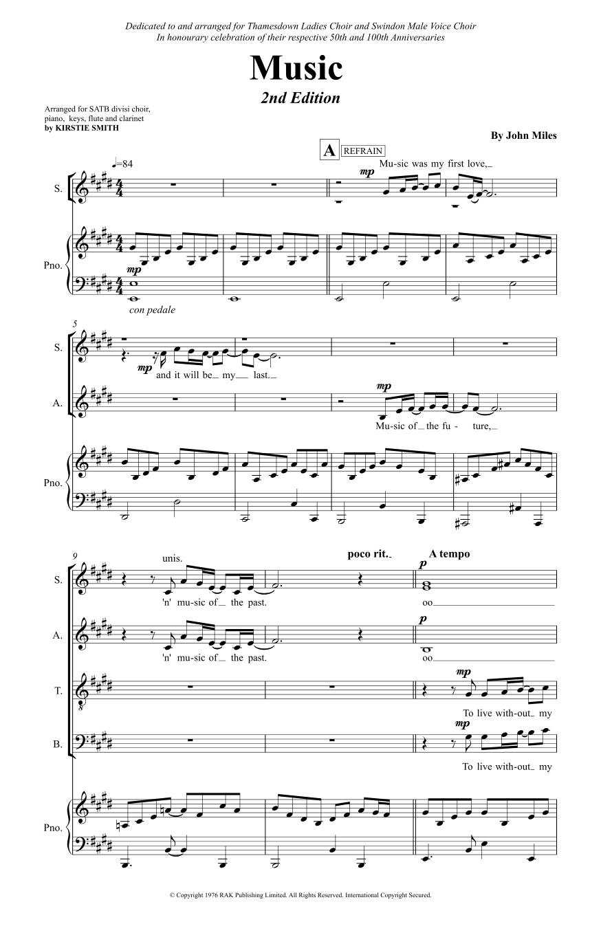 Music (arr. Kirstie Smith) by John Miles Sheet Music for SATB divisi Choir at Sheet Music Direct