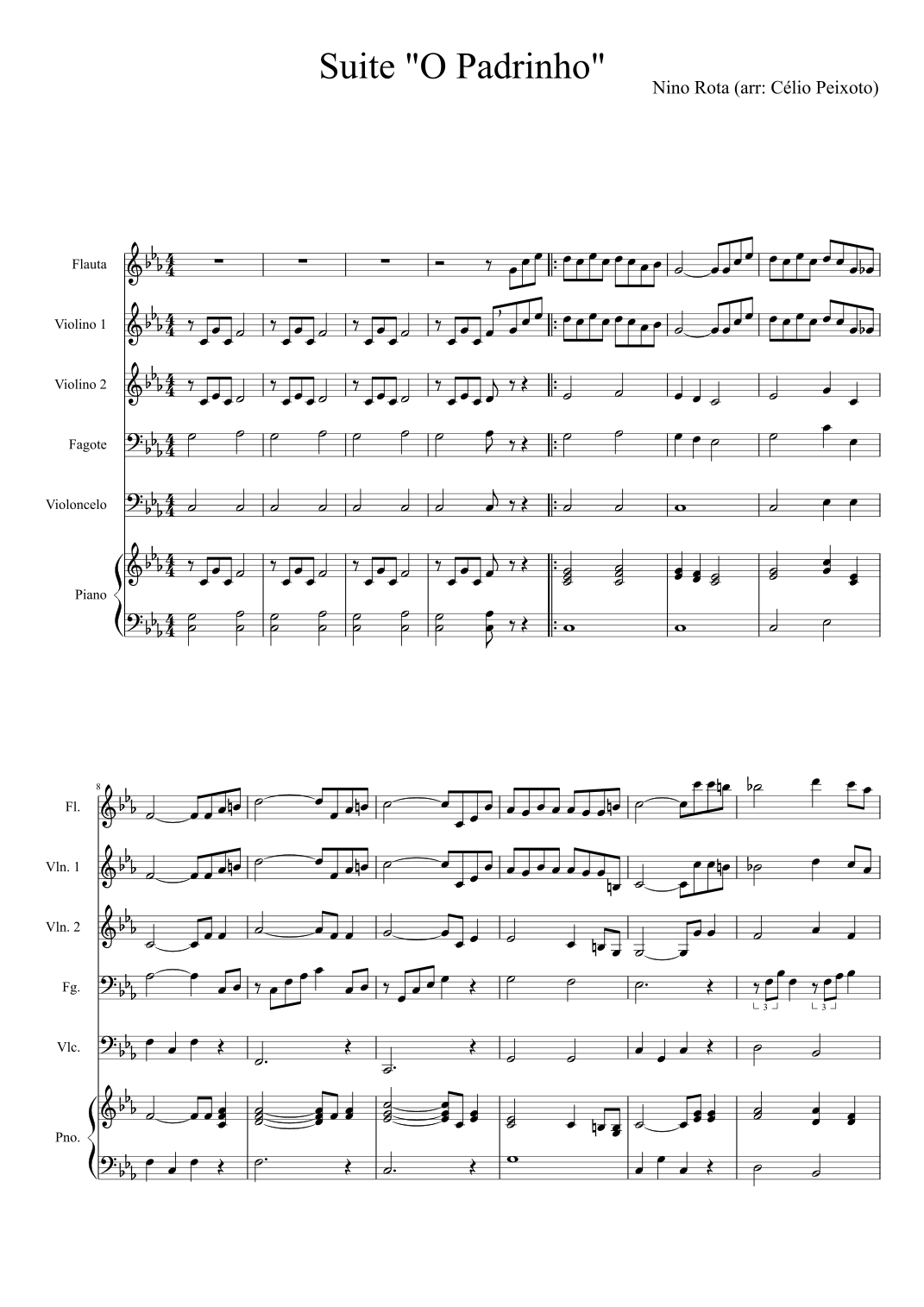 "The Godfather" suite (arr. Celio Vieira Peixoto) by Nino Rota Sheet Music for Chamber Group at Sheet Music Direct
