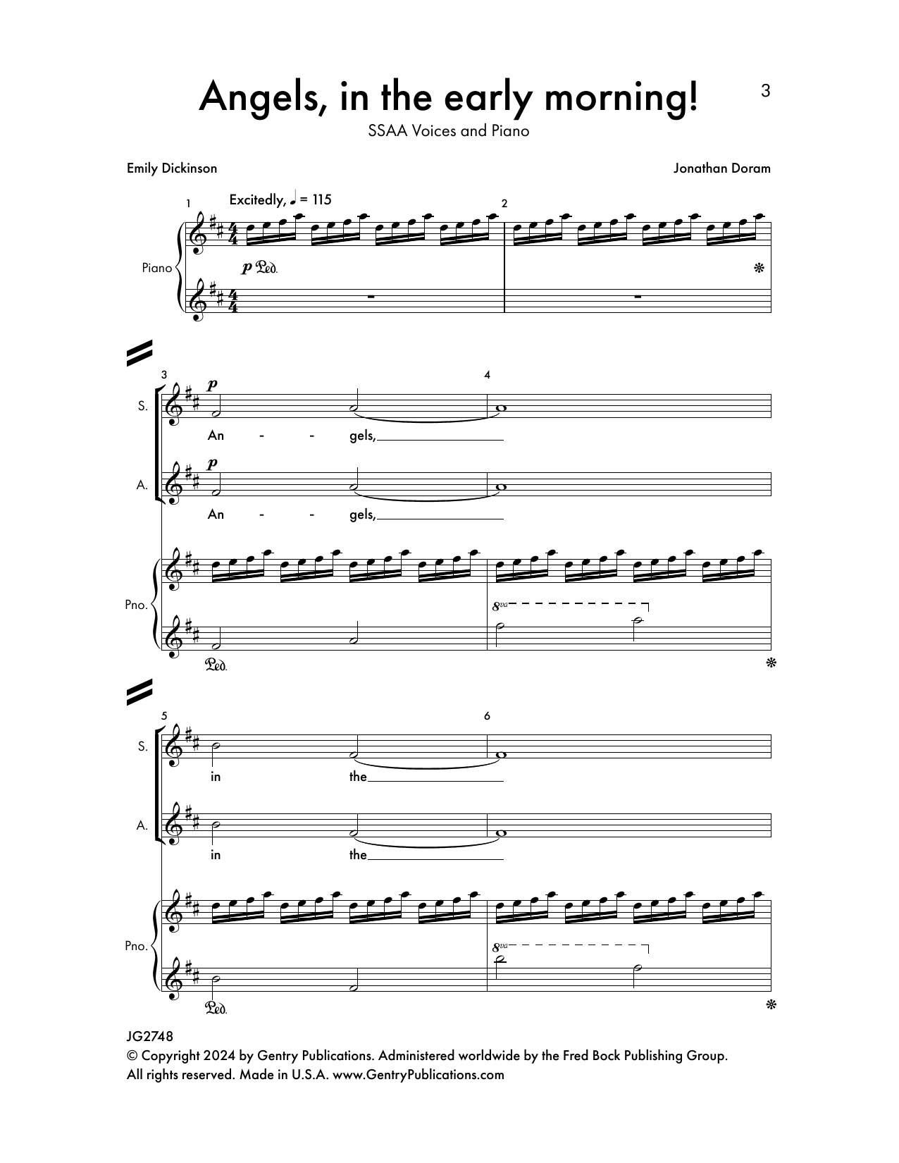 Interactive Digital Sheet Music preview of 'Angels In The Morning' by Jonathan Doram, Choir page 1